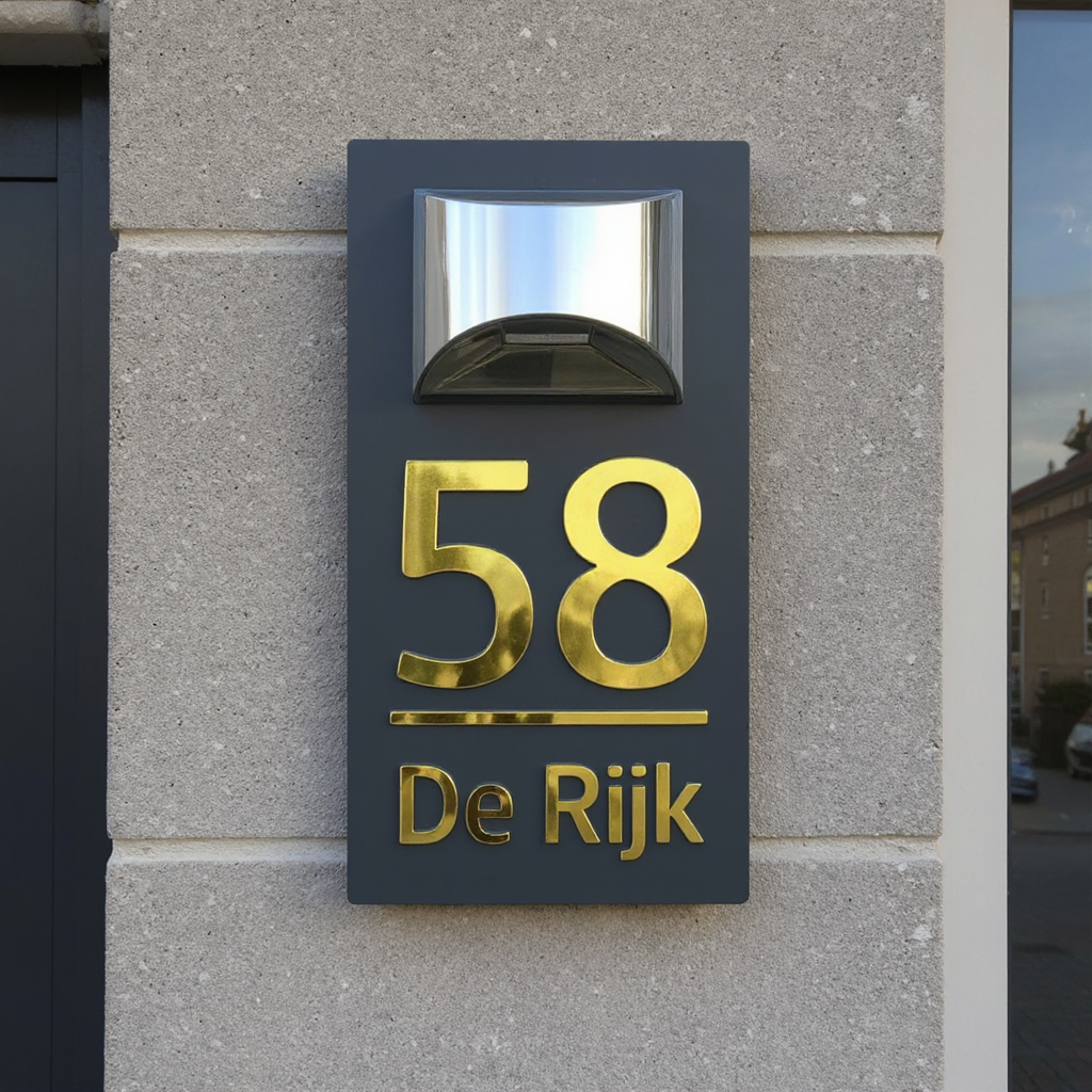 Gepersonaliseerd huisnummerbord op zonne-energie