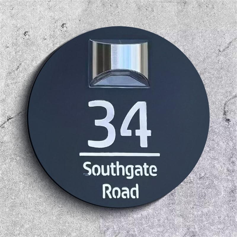 ✓ Gepersonaliseerde cirkelvormige lichtgevend huisbordje op zonne-energie × 1