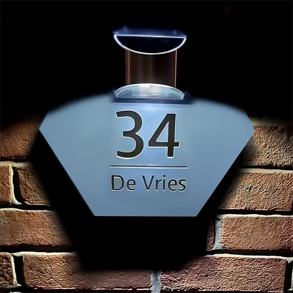 Dit huisbord is gemaakt van duurzame materialen en integreert naadloze technologie op zonne-energie. Personaliseer hem met uw huisnummer en straatnaam voor een persoonlijk tintje. Kies tussen lichtgevoelige of bewegingsgevoelige bedieningselementen, afhankelijk van uw voorkeuren.