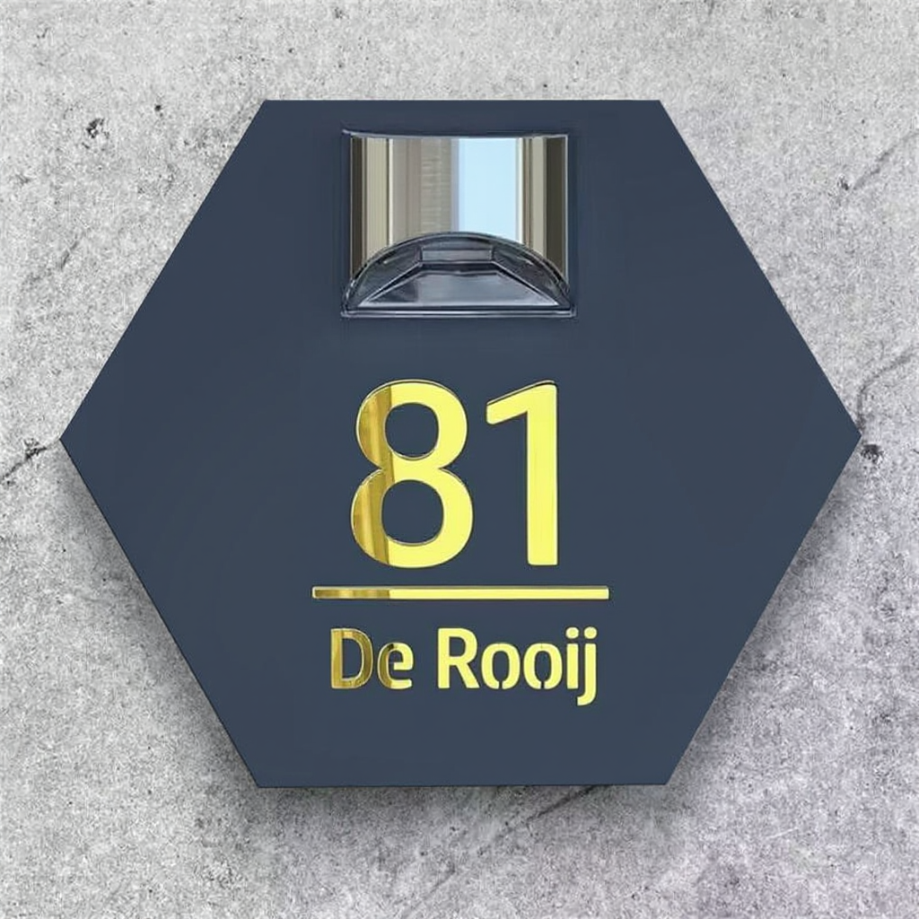 Gepersonaliseerde zeshoekige op zonne-energie gesneden en gegraveerde deurplaten × 1